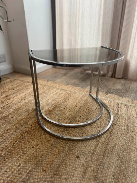 c1970s Vico Magistretti Half Moon Chrome and Smoked Glass Nest of Tables.