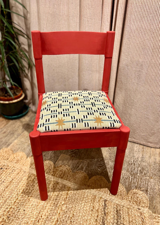 6 Vico Magistretti Carimate dining chairs in emperor red with Studio Ashby Afua Walnut fabric upholstered seats - price is per chair