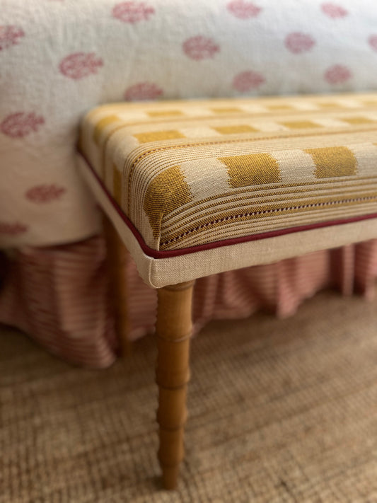 Bespoke Christopher Farr Cloth upholstered bench in “Lost and Found” fabric by Kit Kemp